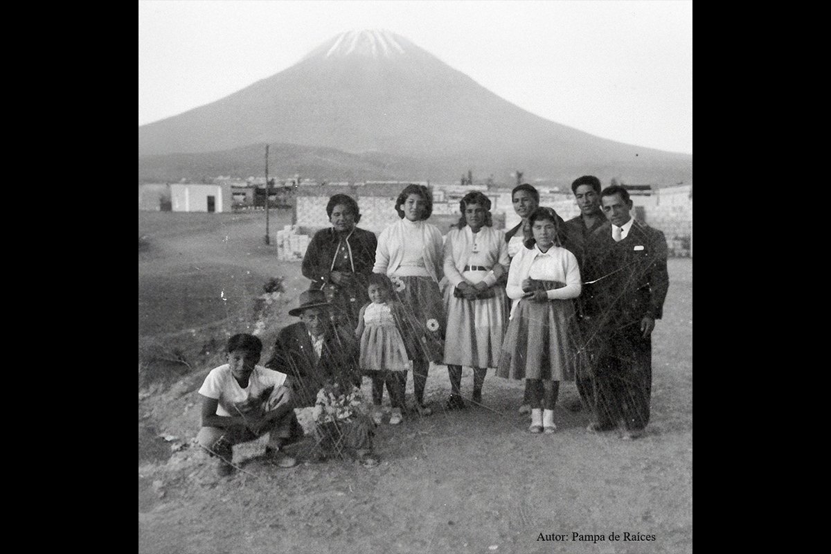 El primer puesto lo obtuvo “Pampa de Raíces”, de Suyani Belén Leyva Torres. La fotografía, tomada hacia 1958, muestra la antigua pampa de Miraflores cuando aún era una zona rural, sin edificaciones. En ella destaca el volcán Misti, y sus familiares delante de él, en una época en la que la ciudad empezaba su proceso de expansión urbana.
