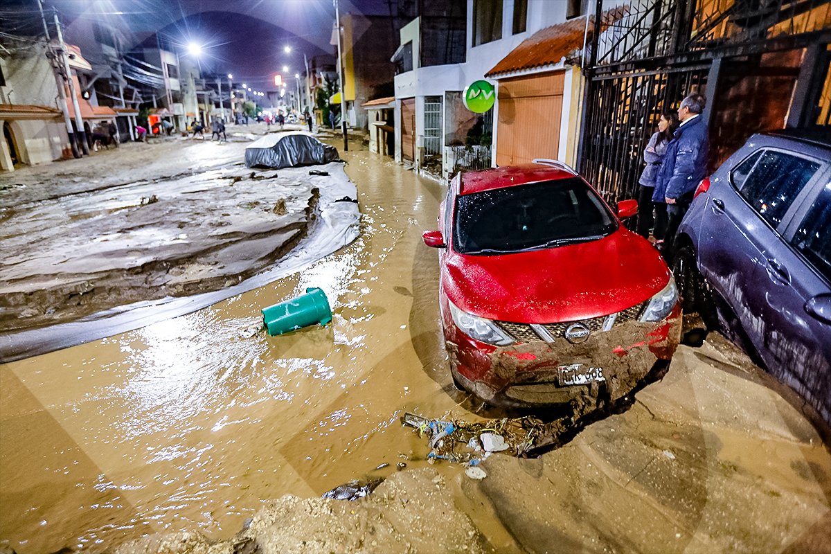 Las intensas lluvias provocaron el colapso de las torrenteras, que ingresaron con lodo y piedras a las urbanizaciones de Cayma, Yanahuara y Cerro Colorado, causando destrozos a su paso y dejando varios vehículos destruidos. Según el reporte, hay dos muertos y decenas de damnificados.