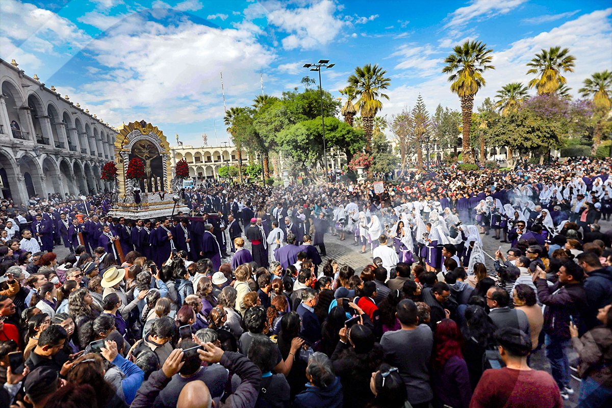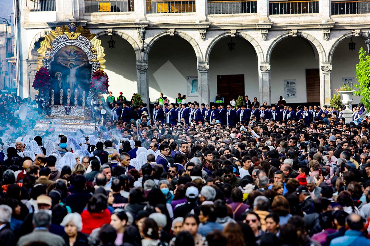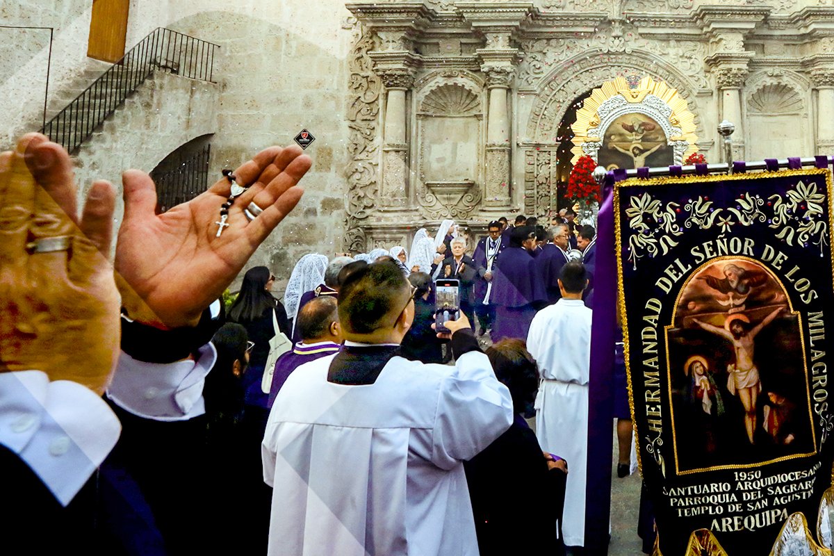 Cientos de fieles acompañaron al Señor de los Milagros en el recorrido de la primera procesión de octubre en la Ciudad Blanca.