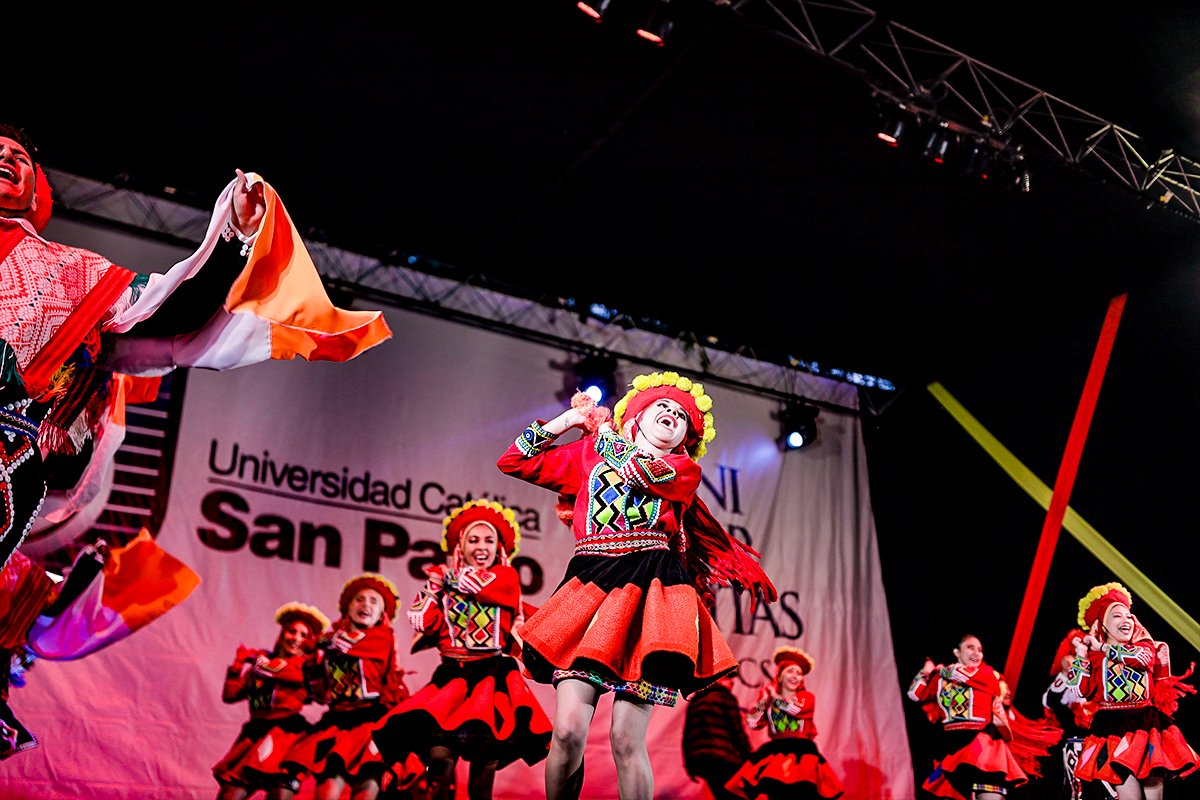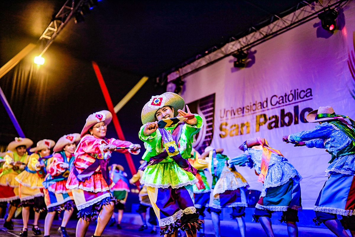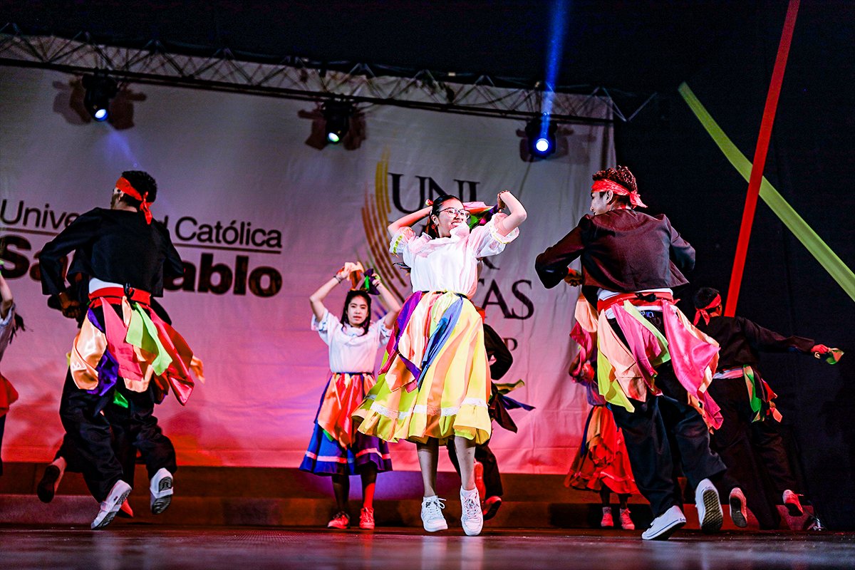 #Universitas2024, en la San Pablo, celebró esta edición con un festival de bailes peruanos. Delegaciones de las doce escuelas profesionales desplegaron su talento. Participaron estudiantes, docentes, administrativos y antiguos alumnos.
