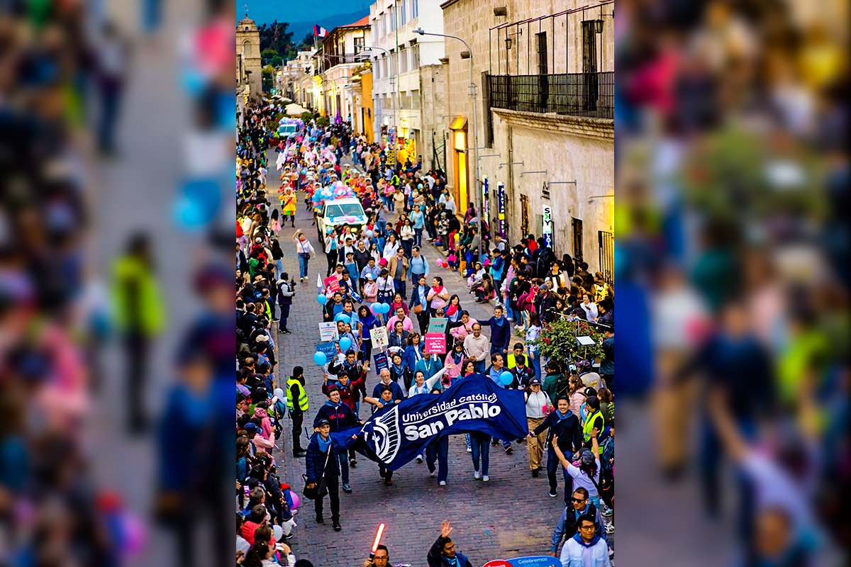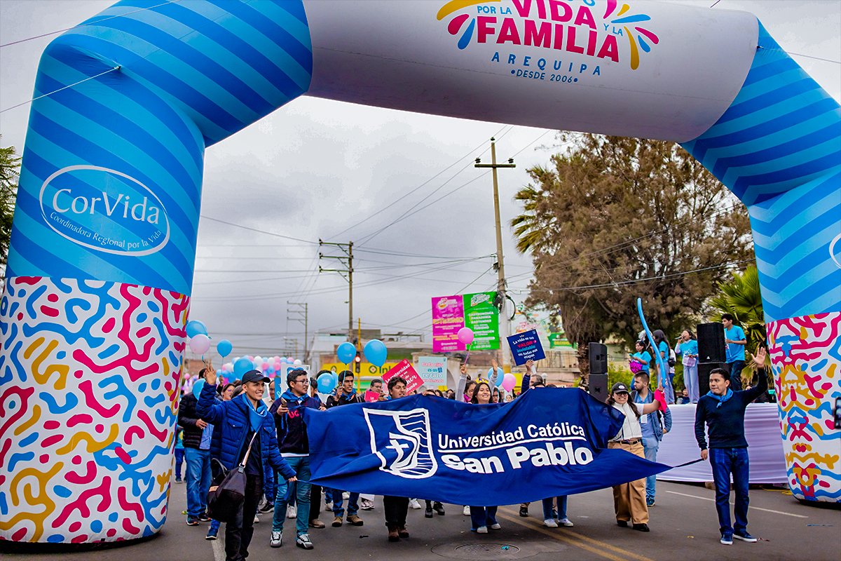 Delegaciones de colegios, parroquias, universidades y otras instituciones se unieron al gran Corso por la Vida y la Familia realizado en Arequipa