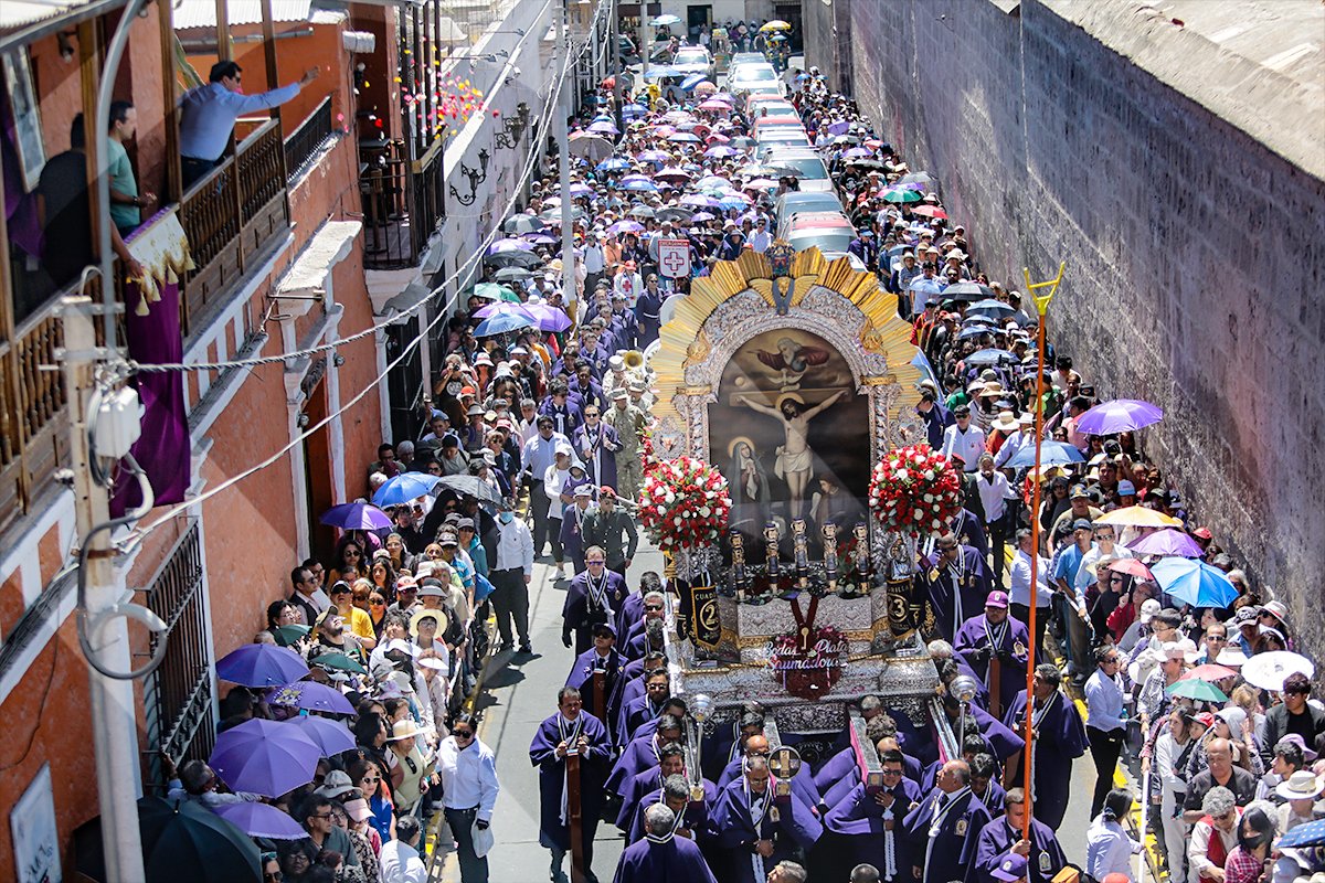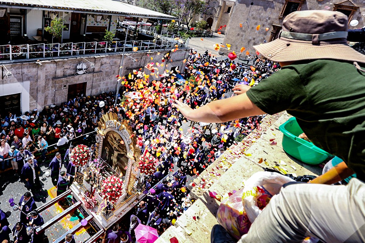 Los fieles del Cristo Moreno acompañaron con fervor el segundo recorrido de la sagrada imagen en Arequipa. Ni el inclemente sol contuvo esta manifestación de fe.