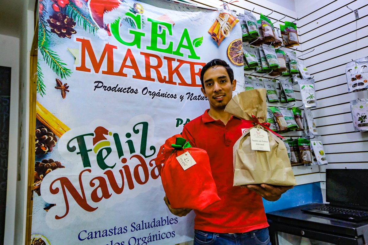 El biólogo Bryan Bedregal Zegarra fundó hace diez años la marca Gea (este término significa madre tierra), su emprendimiento consiste en ofrecer alimentos sanos y orgánicos procesados sin químicos. Desde 2019 cuenta con dos locales, rebautizando su negocio como Gea Market.
