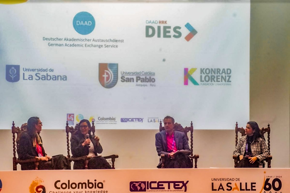 Maldonado Adrián participó en la mesa de diálogo “Empoderar el ODS4: la estrategia de cooperación alemana para la gestión académica en la educación superior”. Allí compartió panel con otras colegas de la región y con Babel Reinhard, director de la Oficina Regional de Bogotá del Servicio Alemán de Intercambio Académico (DAAD), quien destacó el trabajo de la UCSP en la promoción e implementación de proyectos de cooperación internacional con impacto, no sólo para la propia San Pablo sino incluso para otras universidades del Perú y el mundo.