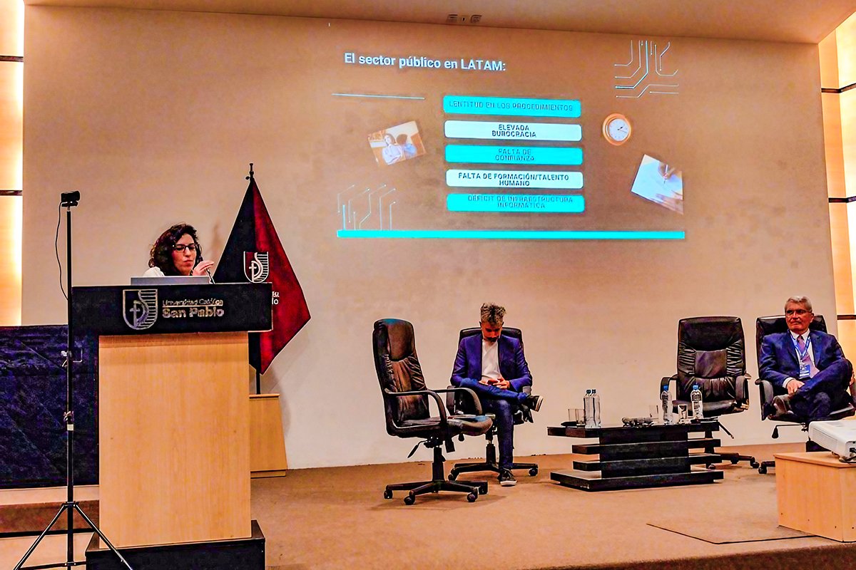 La especialista fue una de las ponentes invitadas a la primera edición de las Jornadas Internacionales de Derecho, Inteligencia Artificial y Gobierno, evento organizado por el Departamento de Derecho y Ciencia Política de la Universidad Católica San Pablo (UCSP).
