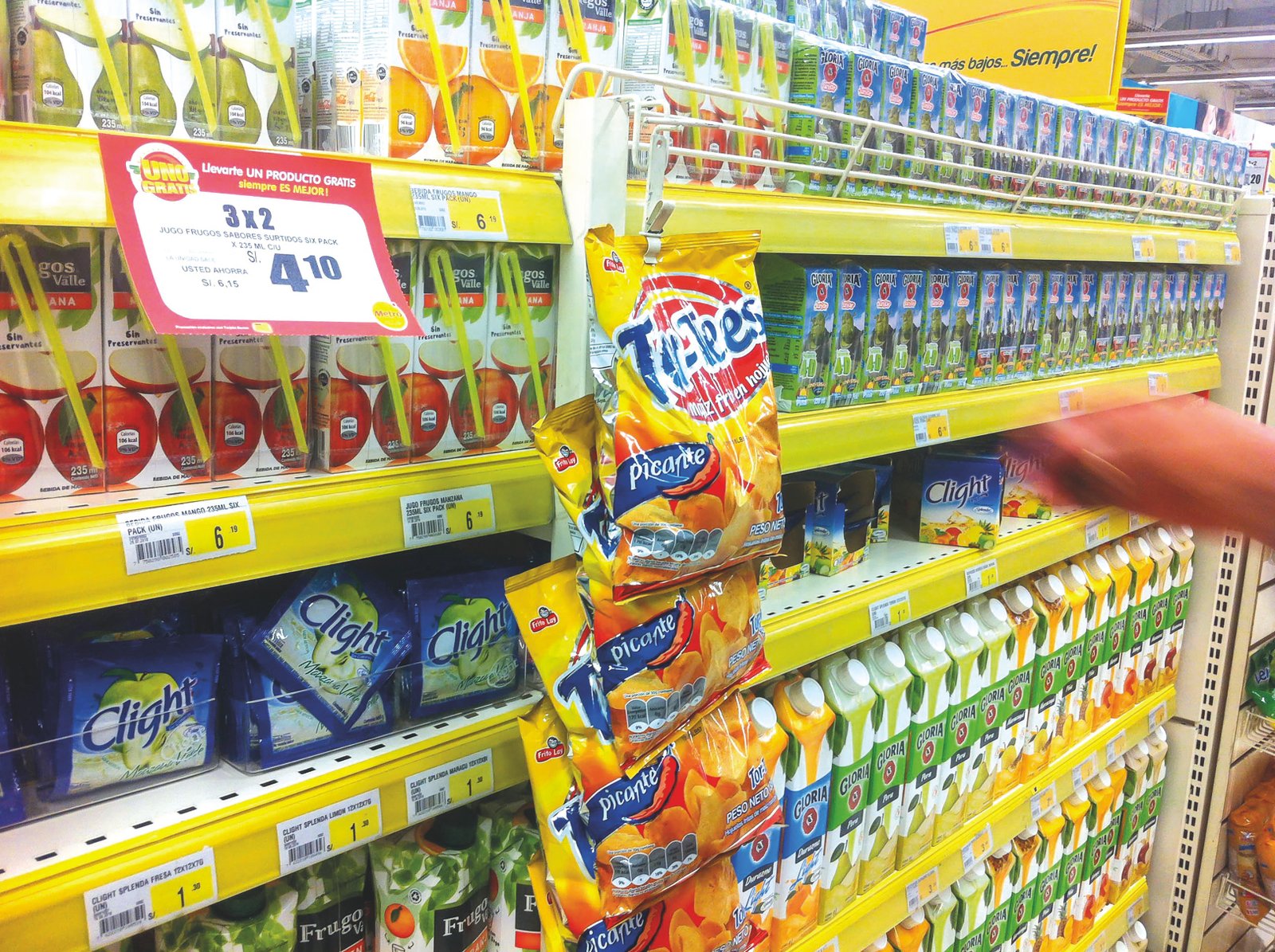 Pues sí. Si hoy se aplicase la Ley de Promoción de la Alimentación Saludable para Niños y Adolescentes (Ley N° 30021), o ley contra la comida chatarra, casi todos estos productos tendrían que dejar de comprarse. O en su defecto, deberían contar con etiquetas especiales que señalen, según sea el caso: “Alto contenido en sodio, azúcar o grasas saturadas. Evitar su consumo” o “Contiene grasas trans: evitar su consumo”.