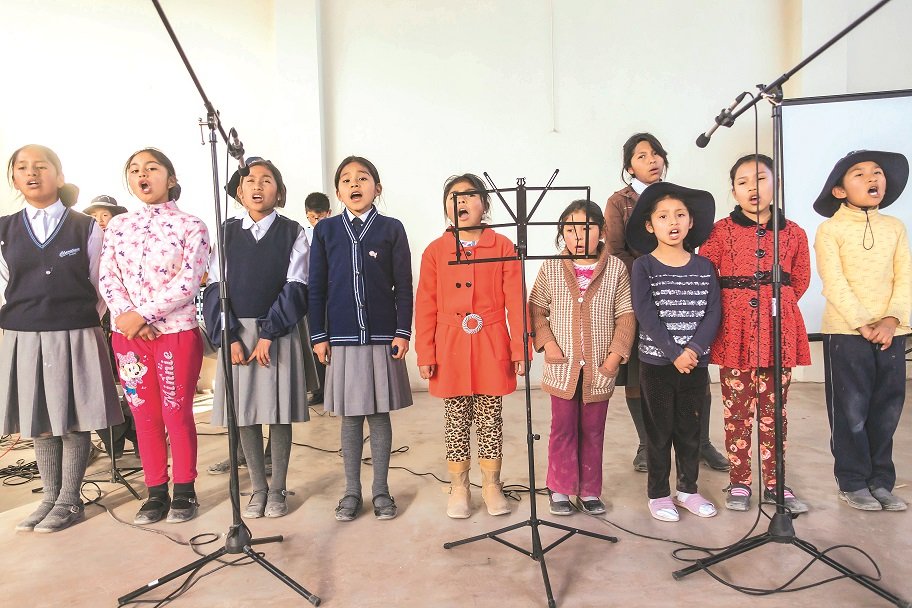 De entre las niñas del coro destaca Dahira Catacora Lipa, quien tiene 9 años y una potente voz. “Soy muy feliz cuando canto. A veces cuando tengo gripe me duele la garganta, pero igual vengo a ensayar. Yo quiero ser una estrella del folclor y el profesor nos ha dicho que las estrellas más bonitas son las que brillan en los cerros”. Ella vive al final de la torrentera, cerca del asentamiento humano Mario Vargas Llosa, casi 50 minutos cuesta arriba.